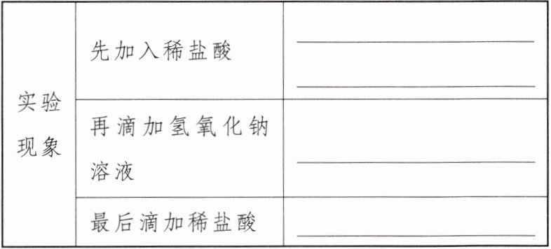 (1)取一支试管,加入一小块打磨过的镁条和 1~2 mL 稀盐酸,观察现象。待镁条完全反应后再向试管中滴加适量氢氧化钠溶液,观察现象;最后向其中滴加适量稀盐酸,观察现象。
