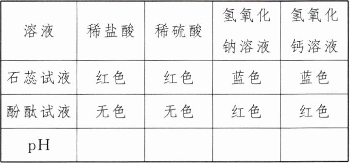 (1)在洁净的点滴板上分别滴加 1~2 滴稀盐酸、稀硫酸、氢氧化钠溶液、氢氧化钙溶液。