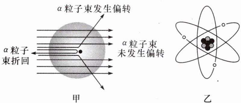 。(2)图甲是实验中α粒子轰击金原子的轨迹示意图,卢瑟福在分析实验结果的基础上,提出了图乙所示的结构,这一研究过程是