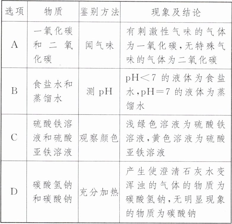5. (2024·滨州)下列各组物质的鉴别方法、现象及结论均正确的是 (