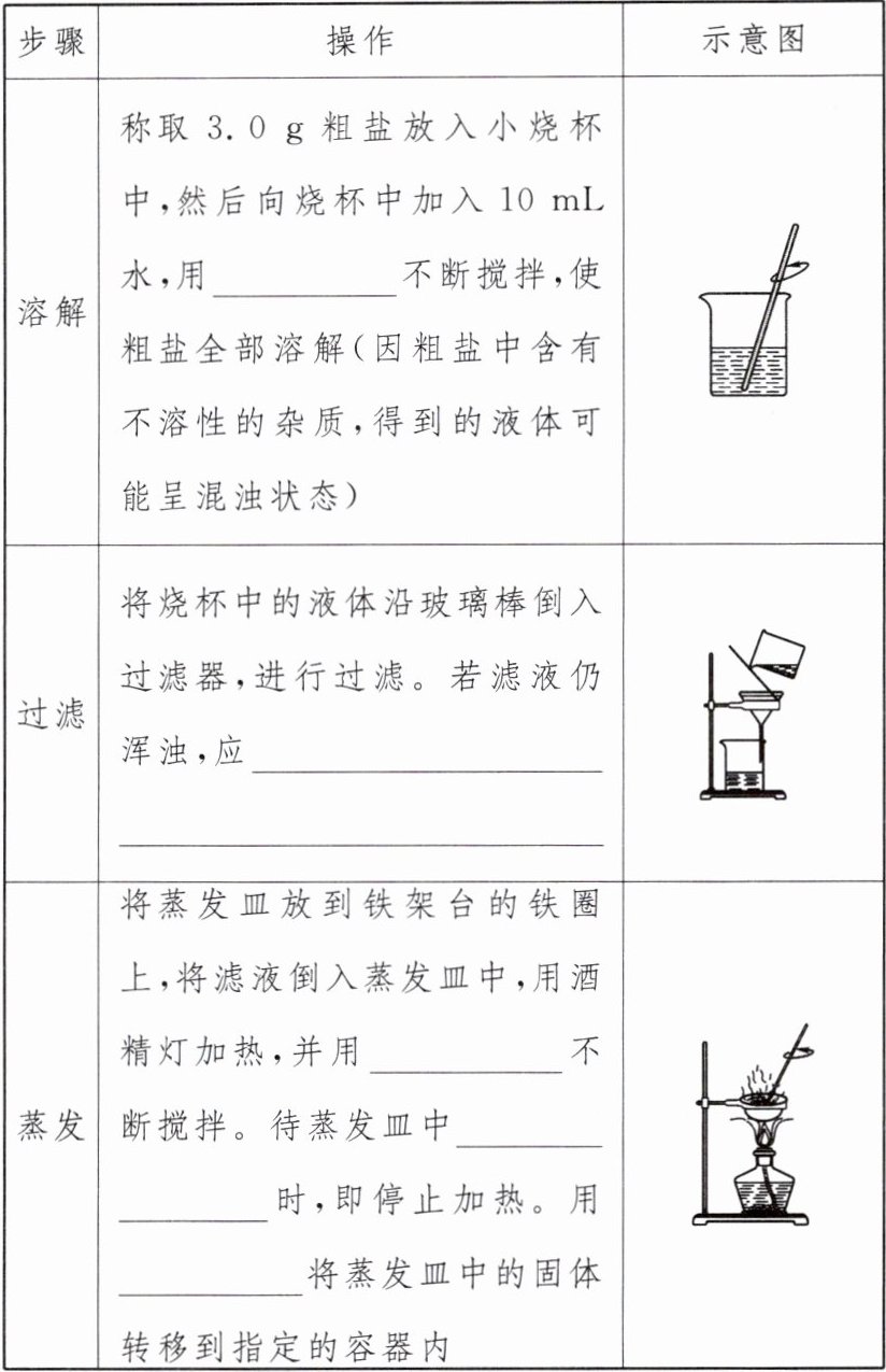 6. 在“粗盐中难溶性杂质的去除”实验活动中,出现下列情况仍继续实验,有可能造成计算出的精盐产率偏低的是(