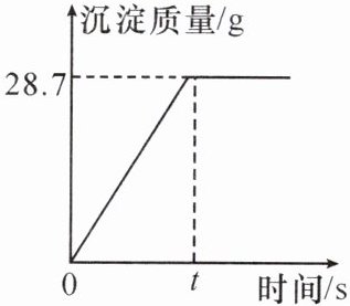 12. (2023·广西)将AgNO₃溶液逐滴加入73.0g稀盐酸中,t s后,沉淀质量不再增加,产生沉淀的质量与反应时间的关系如图所示。