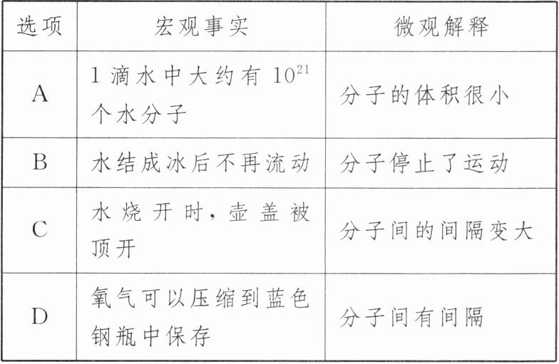 4. (2024·凉山州改编)下列对宏观事实的微观解释错误的是(