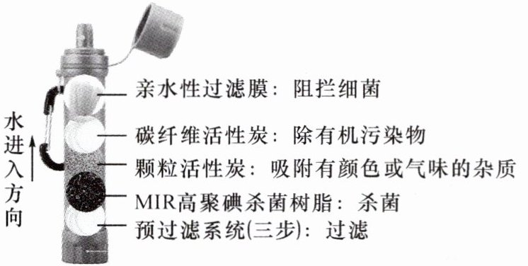 14. (2023·丹东节选)自然界的水通常需要净化后才能饮用。某种便携式净水器适合长期野外工作人群使用,其内部结构示意图如图所示,请结合示意图回答下列问题。