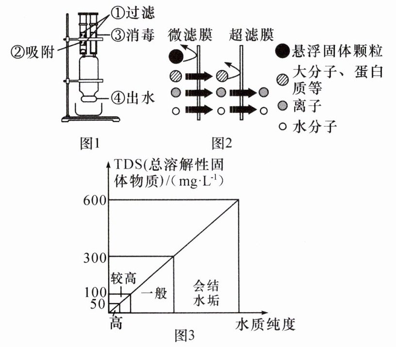 (填具体操作),可加速过滤。该过滤过程采用了图2所示膜分离技术净化原理,经过超滤膜后的水属于混合物
