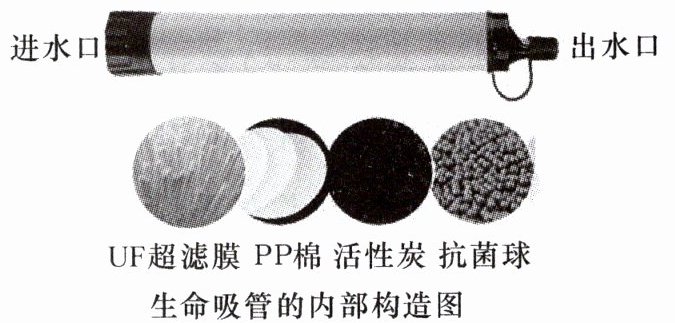 2. (2024·牡丹江)“生命吸管”可以解决野外极限环境中的饮水问题。“生命吸管”中没有用到的净水方法是 (
