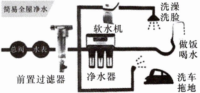 (2) 家用净水器的结构大致有粗滤、活性炭、离子交换树脂、中空纤维和反渗透膜等几种。可以有效清除水中的氯、重金属、细菌、病毒、藻类以及固体悬浮物,其中活性炭在净化过程中的作用是