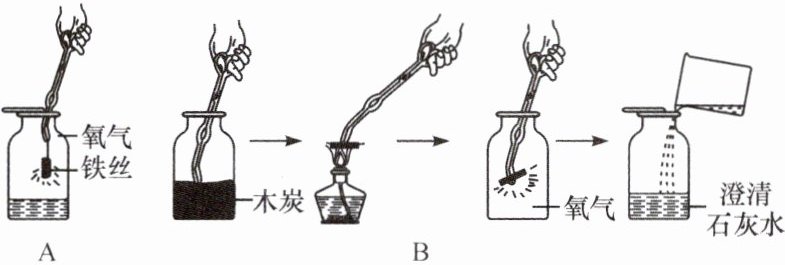 (写一条)。(2)图 B 中在空气中加热木炭时观察到的现象是