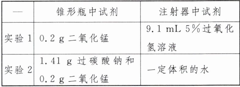 【查阅资料】常温、常压下产生150 mL的氧气,以5%的过氧化氢溶液为制氧剂需要9.1 mL;以过碳酸钠为制氧剂需要1.41 g。