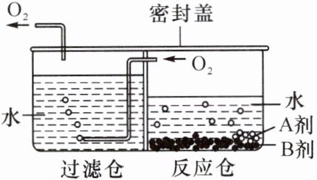 4. 某品牌的“便携式供氧器”的反应原理为用A剂、B剂产生氧气,其中A剂为白色颗粒(2Na₂CO₃·3H₂O₂),B剂为MnO₂,反应的符号表达式为$2Na₂CO₃·3H₂O₂\xrightarrow{MnO₂}Na₂CO₃+H₂O+O₂,$且该反应为放热反应,反应装置如图所示。