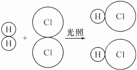 B.该反应的化学方程式为${H_{2} + Cl_{2}\xlongequal{光照}2HCl}$