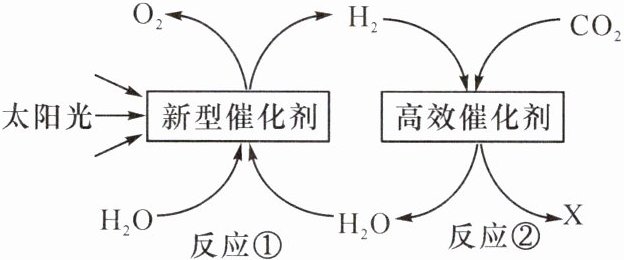 。(3)反应②的化学方程式为 $ 2CO_{2}+6H_{2}\xlongequal{催化剂}4H_{2}O+X $,则X的化学式为