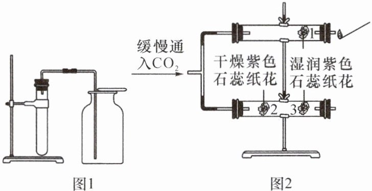 ;可证明CO₂的密度比空气的大的现象是3处的纸花比1处先变红