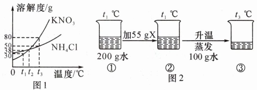 (填“$>$”“$<$”或“$=$”)$NH_{4}Cl$。(3)已知$X$是$KNO_{3}$或$NH_{4}Cl$中的一种,某同学对该物质进行了如图2所示实验,据图回答下列问题。
