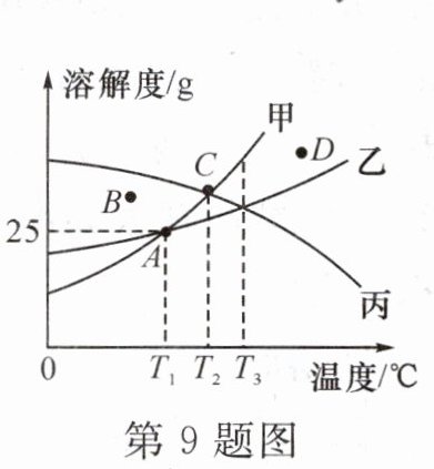 9. (2023·郴州)甲、乙、丙三种固体物质的溶解度曲线如图所示。回答下列问题。
