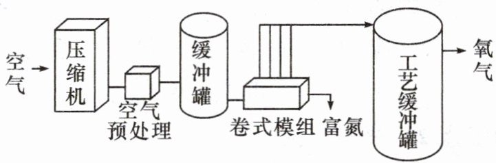9. 工业制氧气有四种方法,分别是分离液态空气法、膜分离技术、分子筛制氧法(吸附法)和电解制氧法。如图是采用膜分离技术制取氧气的简易流程: