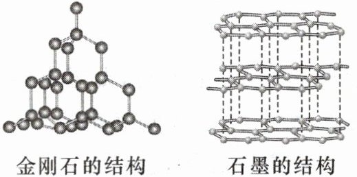 5. 如图为金刚石和石墨的结构模型图,图中小球代表碳原子。下列说法正确的是 (