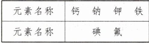 9. 请把人们食用下列食物或药剂主要补充元素的元素符号填写在横线上。