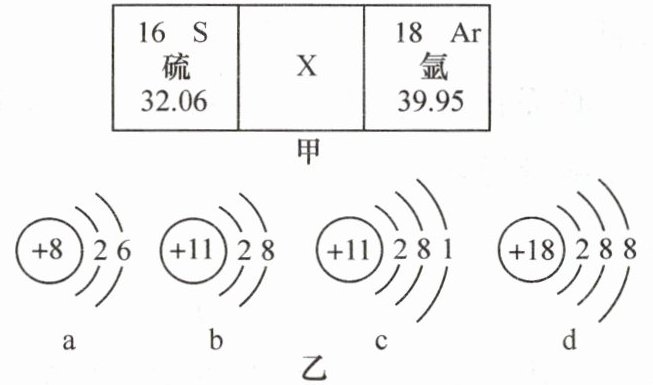 D.图乙中,b 和 d 是具有相对稳定结构的原子