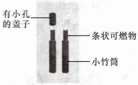11. [古代科技]我国古代点火用的“火折子”是用纸或棉一类的物质卷成条状,装在小竹筒内,并盖上有小孔的盖子。使用时打开盖子,吹一吹就燃烧起来。请你分析并回答下列问题。