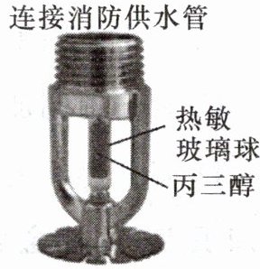 12. [科学态度与责任](2023·福建)消防用自动感温喷淋头结构如图所示。当喷淋头附近温度升高到喷淋头的设定值时,丙三醇将热敏玻璃球胀破,喷淋头自动喷水灭火。下列说法不正确的是(