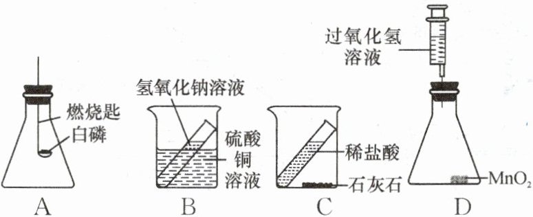 2. 如图所示,下列实验装置不能用来验证质量守恒定律的是(