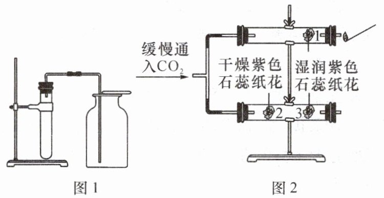 (4) 按图 2 所示方法进行 $ {CO_{2}} $ 的部分性质实验:将干燥的紫色石蕊试纸放在
