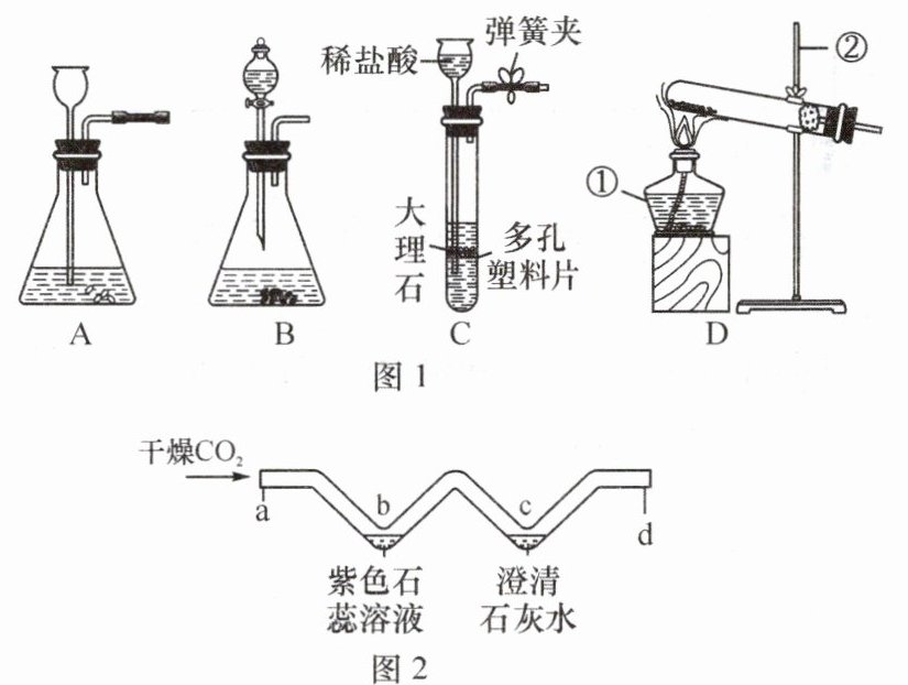 。(4) 按图 2 所示方法进行 $ {CO_{2}} $ 的部分性质实验:将干燥的紫色石蕊试纸放在