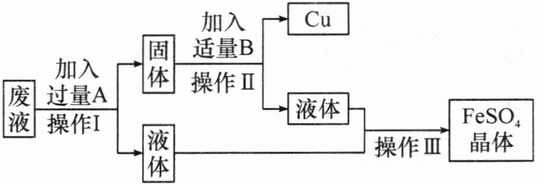 13. 某工厂欲从含有CuSO₄的废液中回收金属铜,并得到工业原料硫酸亚铁,其工业流程如图: