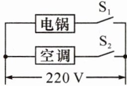 (2)开关$S_{1}$和$S_{2}$都闭合,电锅和空调都正常工作,总功率: