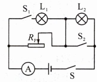 (2)只闭合开关S,滑动变阻器和$L_{2}$串联,由$P = \frac{U^{2}}{R}$可得灯泡$L_{2}$的电阻:$R_{2} = \frac{U_{2}^{2}}{P_{2}} = \frac{(4\ V)^{2}}{1.6\ W} = 10\ \Omega$