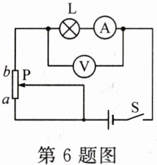 6. (2024·亳州谯城区期末)如图所示,电源电压恒定不变,闭合开关,当滑动变阻器的滑片 P 由 b 端向 a 端滑动时,下列说法正确的是 (