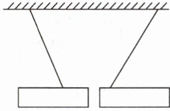 6. 如图,两个形状完全相同的物体,用细线悬挂在天花板上,它们之间相互作用,则(