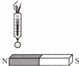 3. 如图,弹簧测力计下端吊一铁球,当它们在水平放置的条形磁铁的上方沿水平直线从左端移到右端的过程中,弹簧测力计的示数(