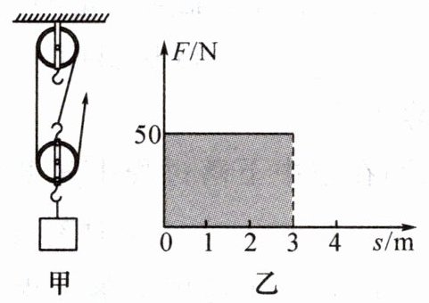 11. 如图甲所示,用滑轮组将重为 $ 90 \, N $ 的物体匀速提起,图乙是拉力 $ F $ 与绳子自由端移动距离 $ s $ 的关系图像,不计绳重和摩擦。则图乙中阴影部分的面积表示的物理量是
