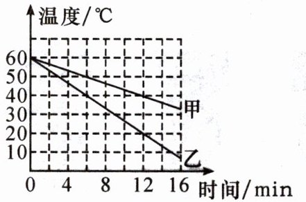 ② $ 0 \sim 12 \, min $ 乙温度降低了 $ 20^{\circ}C $