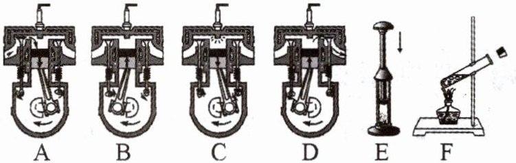 11. 【教材习题改编】如图所示,A、B、C、D是四冲程汽油机的工作示意图,E、F是演示实验的示意图,C图是