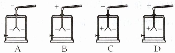 5. (2024·湖北)用毛皮摩擦过的橡胶棒接触验电器,能正确表示橡胶棒和验电器金属箔带电情况的是(