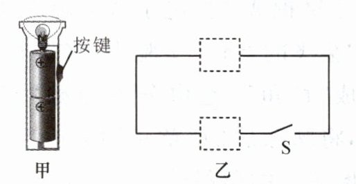 7. 如图甲是日常使用的手电筒,图乙是该手电筒的电路图,请将此电路图补充完整。
