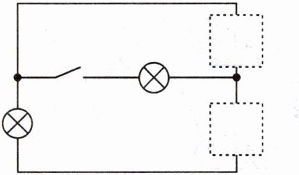 16. 如图所示,请在两个虚线框内填“电源”或“开关”的符号,使开关都闭合时,两灯组成并联电路。