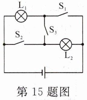15. 如图所示电路中,要使小灯泡 $ L_1 $、$ L_2 $ 串联,必须闭合开关