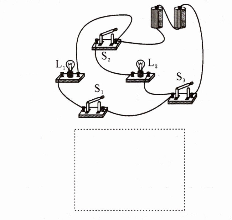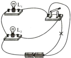 11. 如图所示电路,开关控制的是灯$L_{1}$,请改动一根导线,使得开关控制灯$L_{2}$。(在去除的导线上画“×”,并连上正确的导线,导线不得交叉)