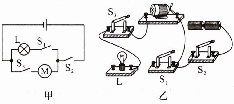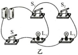 14. 图乙是根据图甲电路图连接的实物图,图中还有部分导线没有画出,请用笔画线代替导线将实物图连接完整。