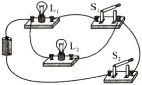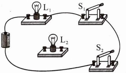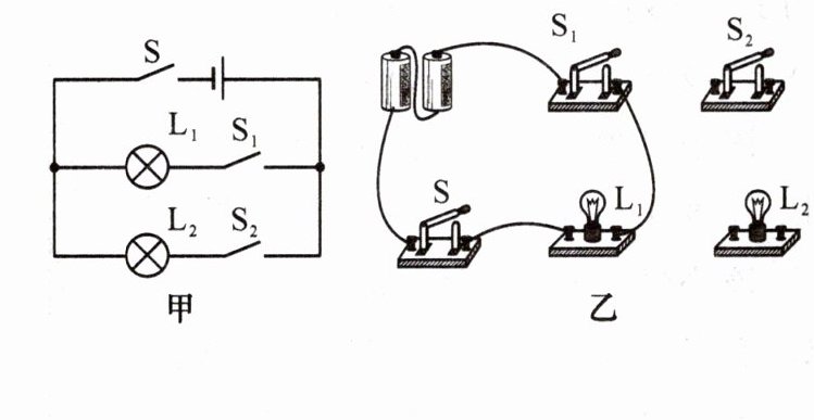 9. 完成如图所示电路连接,要求两灯并联,开关$S_{1}$控制$L_{1}$,$S_{2}$在干路中控制整个电路。