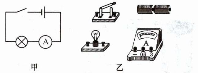 7. 如图所示,根据电路图甲连接图乙中的实物电路(电流表接0~3 A量程)。