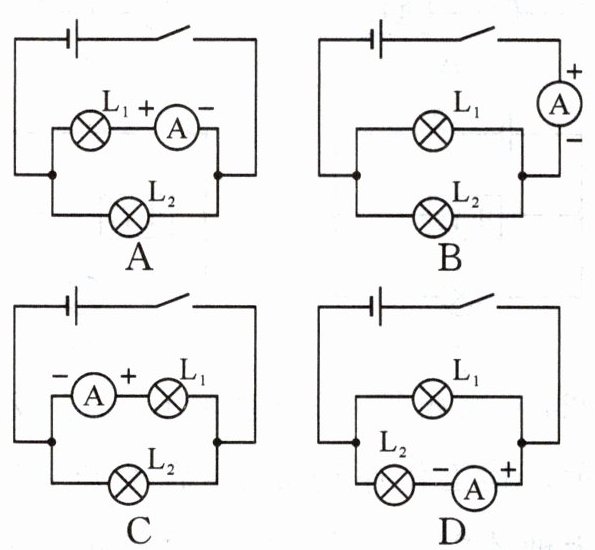 5. 下列选项图中能够直接测出灯L₁ 电流的电路是(
