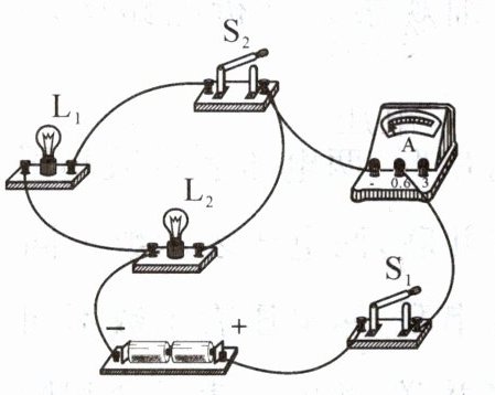 )A.只闭合开关 $ S_{2} $ 时,电流表测通过灯泡 $ L_{1} $ 的电流