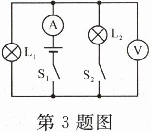 3. 如图所示,当开关 $ S_{1} $、$ S_{2} $ 闭合时,两灯都能正常发光,若再断开开关 $ S_{2} $,则(