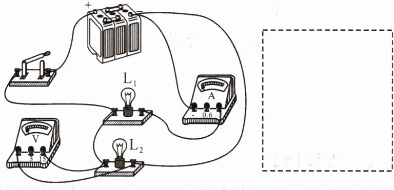 12. 根据实物电路,在虚线框中画出对应的电路图。