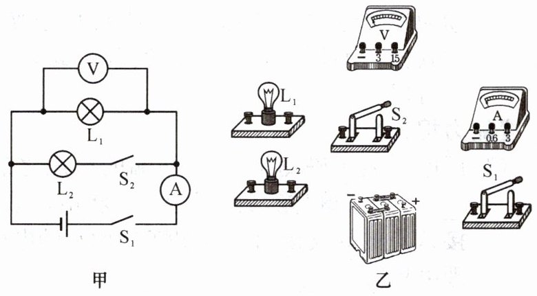 11. 根据图甲所示的电路图,连接对应的实物图乙。